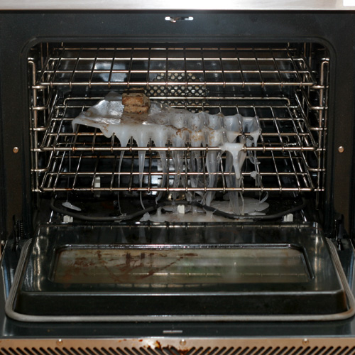 Well, until we discovered the cutting board that Tom had thrown in there during our last dinner to keep my tofu warm had now melted all over the inside of the oven. Tom is not the crying type, but I swear at that moment he almost began sobbing.