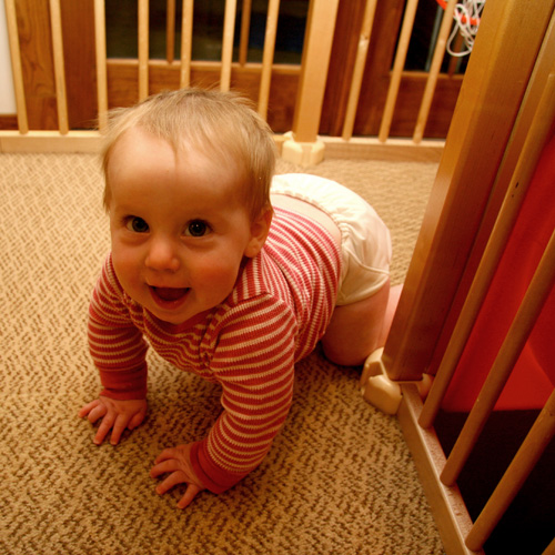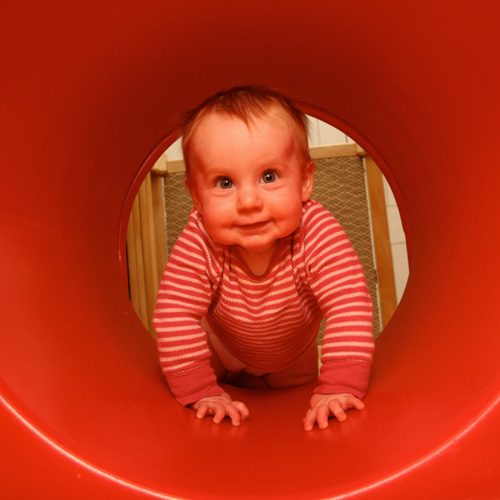 In the past few weeks Ellery has mastered the stairs, and happily climbs to the top, delighted with herself. She laughs in the mirrors and crawls through the tunnel. It’s gratifying to see our third enjoying it just as much as our first.