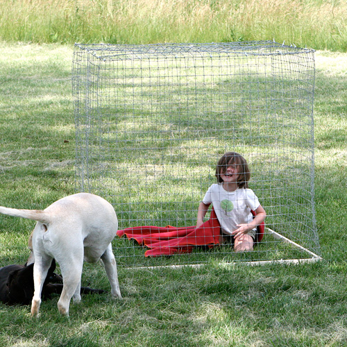 Okay, it’s really for our garden so the deer don’t clean us out and Neko was in there voluntarily, but I bet some of my fellow parents may have seen some merit in the concept.