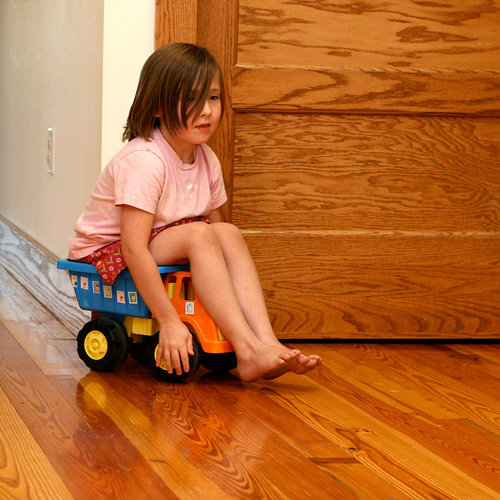Neko’s truck has suddenly turned into her “wheelchair”. In a sort of pathetic Tiny Tim kind of way she tells us her legs don’t work and then plunks down into the bed of her truck and painstakingly rolls the wheels forward by hand. It takes her nearly a full minute to get about five feet, which might be the slowest I’ve seen her move since she was about six months old.