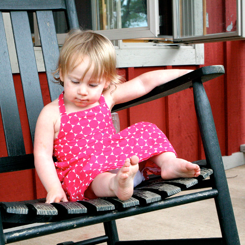 We spent a big chunk of the day on the front porch since we're painting the basement and the fumes are outrageous. The pool and the play equipment is out back, so that's our default hang-out. But today we wandered out front and rocked and yammered on about a whole lot of nothing. Boy, does Ellery love a good rocking chair.