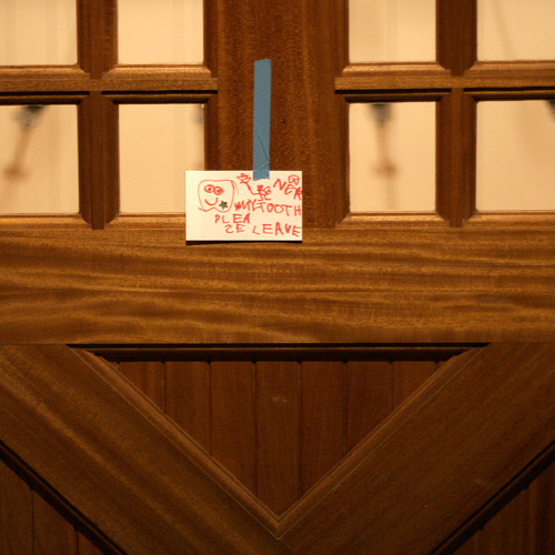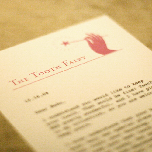 I've never been one for perpetuating this sort of mythology, but I felt she deserved an answer that would quell her fears. So I grabbed the digital Tooth Fairy pen, and composed a note. The Tooth Fairy assured her that she could keep her teeth, but maybe she could leave her tooth pillow right outside the front door, and the Tooth Fairy would leave something special.