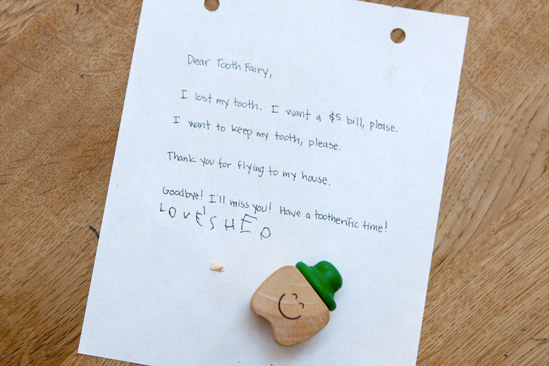 In what seems to be a tradition for our family, Shep has opted to keep his teeth. And ask for $5 instead of the going rate in this house, which is $1. I have a feeling the tooth fairy isn’t going to change her rates any time soon.