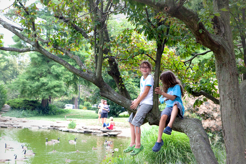 Afterward, a trip to the pond with a zillion geese and the perfect climbing tree.