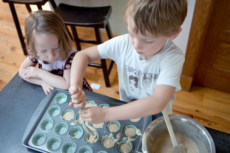 This morning Shep wanted to help make muffins. Actually, that’s not true, he wanted to make the muffins all by himself. With no help. Pouring and mixing and putting batter into the pan. It wasn’t how I would do it, but he did a bang-up job for a five-year-old.