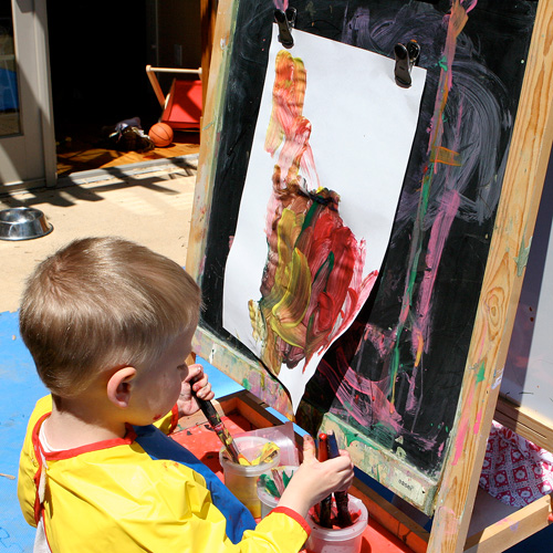 When we woke up this morning, the weather was perfect. As we began puttering around the house, Shep declared, "I want to paint!"