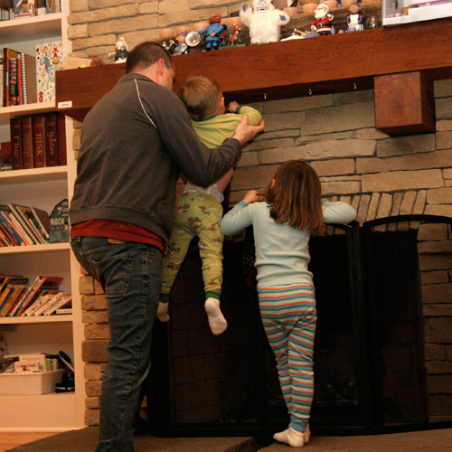On the upside, the evening was fantastic. We hadn’t had time to make the switch from four hooks to five, so we hadn’t yet hung our stockings. After we checked that off the list and posed for a family portrait at Neko’s insistence, we were off to bed as she gasped, “We forgot something! We need to leave cookies for Santa!”