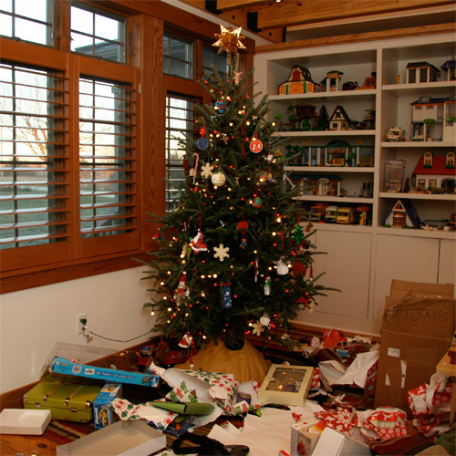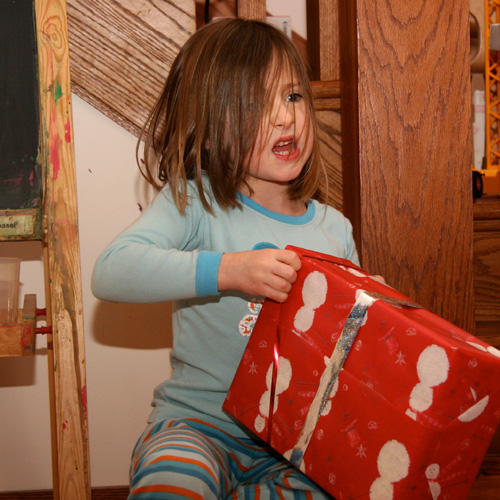 I pat myself on the back in the wrapping department, however. For the last two years, I’ve spent Xmas Eve furiously wrapping presents until the wee hours. I vowed that wouldn’t happen this year. And it didn’t. I stayed up until 3am last night, but today we were free of wrapping duties. So there’s still room for improvement, but I’m getting better.