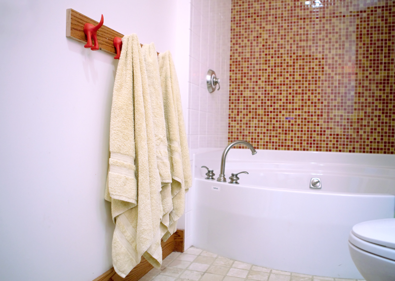 It took us roughly 5.5 years, but we finally hung hooks in the kids’ bathroom. Which is worse than the 3 years it took us to hang a toilet paper holder. And, yes, I know, these hooks are probably really for dog leashes, but they make all of us smile.