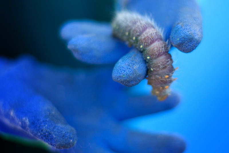 This imperial moth caterpillar may be one of the strangest creatures we’ve found on the farm. Ambling across the driveway, it measures nearly four inches long and is covered in fuzz (which some are allergic to, hence the blue garden gloves). Neko was beside herself with not only a new find but the shock value it wields with strangers.