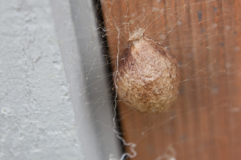 Tom discovered this spider while cutting grass. She has made a nice home for herself on the side of the shop. She seems to be so comfortable that she’s unpacked some luggage and even her egg sac.