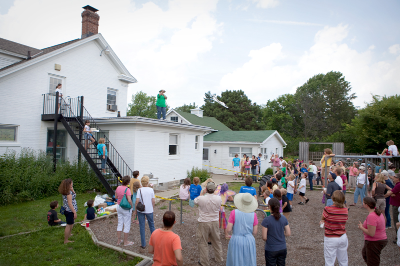 Wednesday night we prepared for the Annual Egg Drop, where students try to create a vehicle that insures the safety of a raw egg as it falls from the roof of the school. Neko and I spent the evening refining concepts and dropping them from the loft. Sure, it was one step away from prepping something for FedEx, but there was lots of talk about how to properly cushion something for an inevitable blow. Her ultimate product: an egg inside a plastic container filled with cotton balls, placed inside a cardboard box filled with balls of yarn.