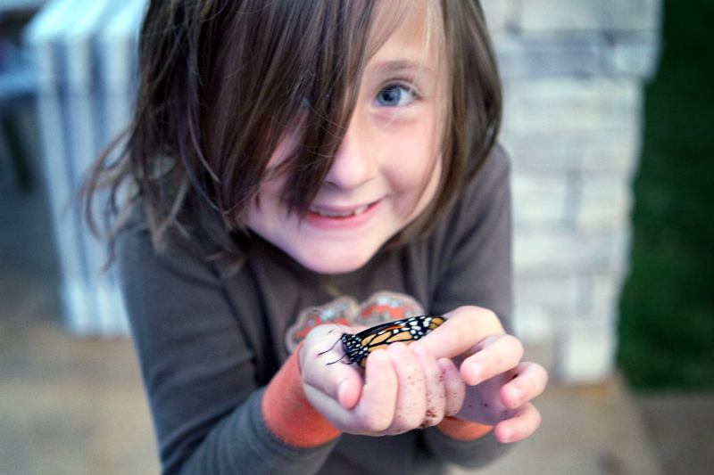 One of the dads at Neko’s school is involved in Monarch Watch, a program dedicated to the conservation and research of monarch butterflies. At the back-to-school picnic, he made sure every child could took home a caterpillar (or six) to watch the process up close and personal.