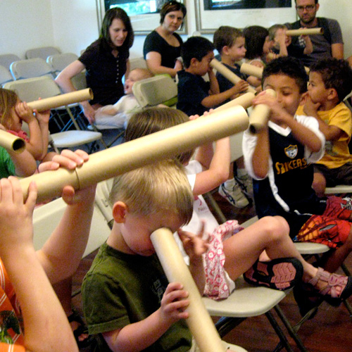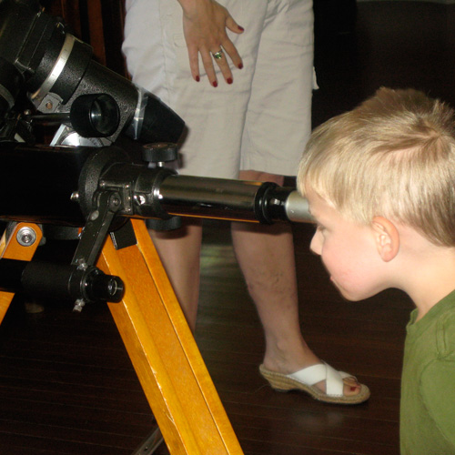 Now you might be thinking that really old telescopes and small children are a terrible match, but it actually turned out amazingly well. Our guide, Dean, tailored the program to suit the fidget level of our kids. After a quick power-point presentation about the planets, everyone got to practice looking through cardboard telescopes before we graduated to a small real one.