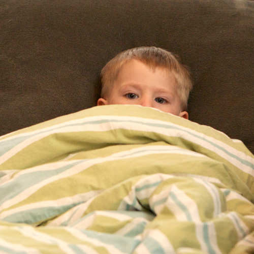 After I just couldn’t take it anymore, I gathered him up and plunked him down on the couch with a Wiggles DVD, a big blanket, and his pacifier. And it was at that point that I realized that he must have really been exhausted, because he sat in that spot for over an hour, not moving a muscle.