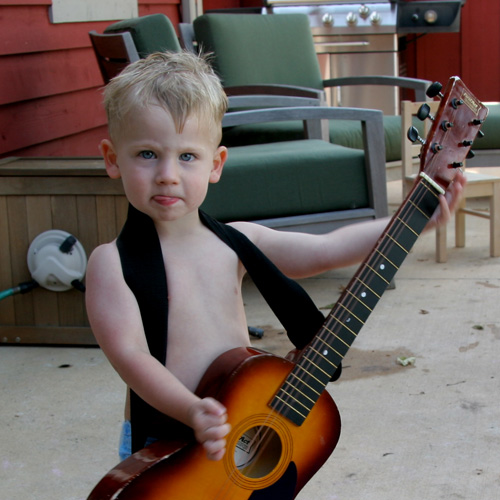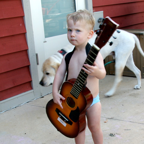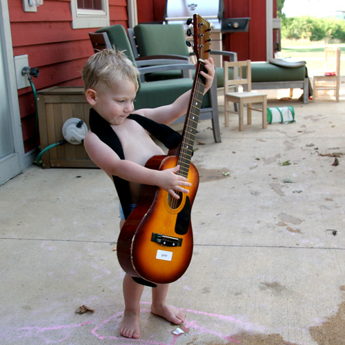 Shep is a second child. And I’m ashamed to say that he owns very few things. We got all this stuff during the first few years of Neko’s life because she needed them first. And they aren’t really hers, as we often say, they “belong to the whole family.” But let’s be honest, she’s the one who plays with them. And Shep’s not really a “thing” guy. He loves that guitar and a ball of any kind. But he’s not often particular about which ball he has, and Neko just doesn’t really care about the guitar.