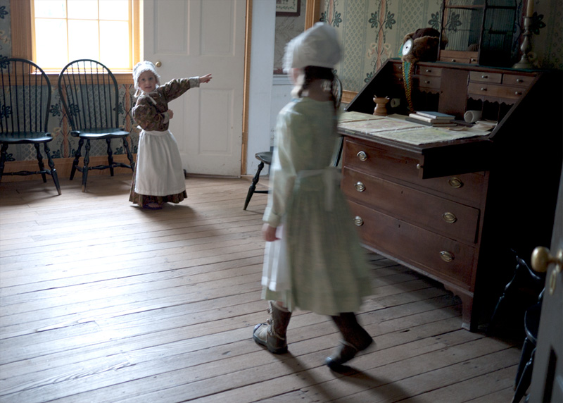 Neko and Ellery bought period outfits to wear that day (Shep declined), and wore them until bedtime. Back in the thick of my own Little House phase, my mother made us matching Laura, Mary, and Carrie dresses. (There are pictures of us somewhere in a Japanese tourist album with my father in downtown Philadelphia. He was sporting a long beard and his suit that day, and I think they thought we were Amish.)