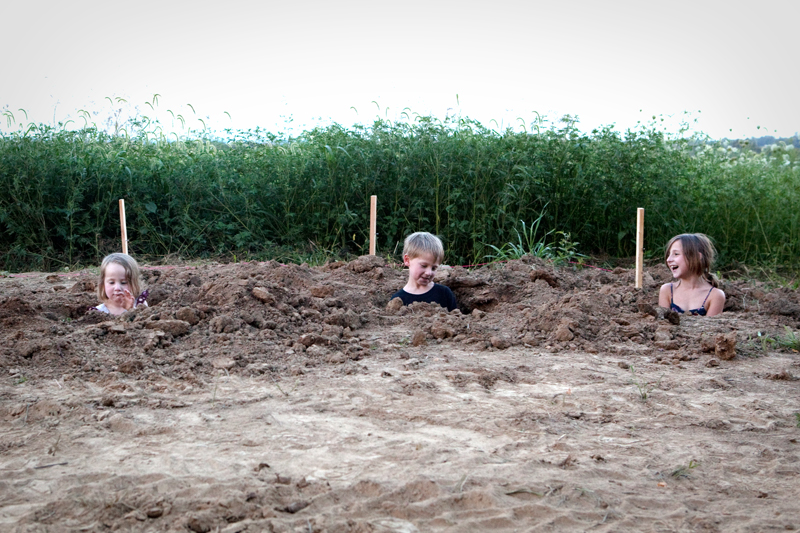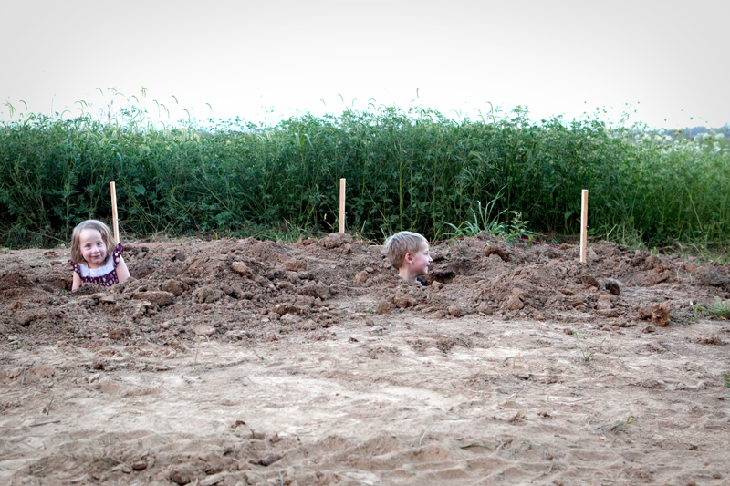 Needless to say, by dusk we had ton of great big holes in our yard. And, omigoodness, the kids thought they were the most fun things ever. I’m going to add this to the list for my future toy store—big holes and dirt piles.