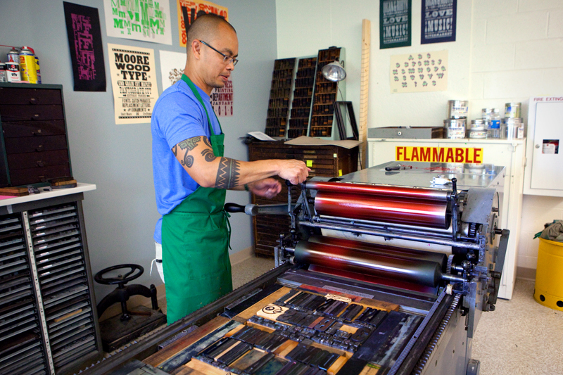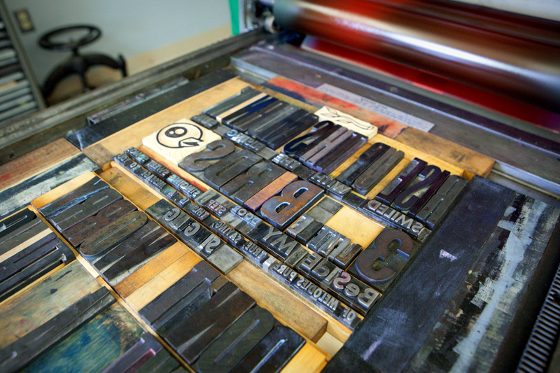 Thanks to some serious scheduling gymnastics, one amazing babysitter, and some family members kicking in some time, Tom and I are both attending a week-long letterpress workshop in town. From 9am–5pm, we will learn the ins and outs of this amazing Vandercook.