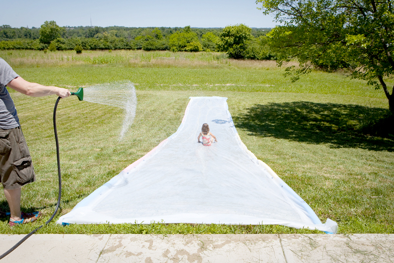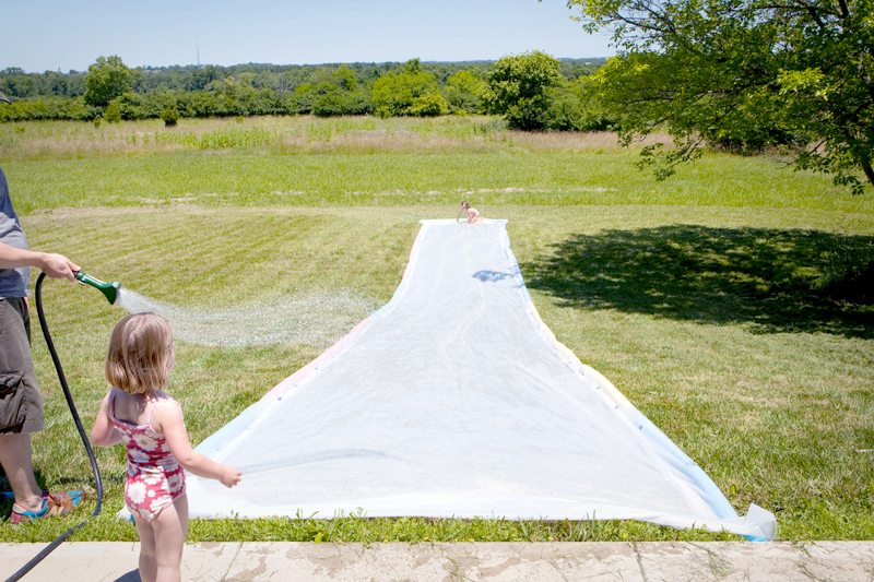 By the end of the day he had constructed a 60 foot slip-n-slide in my parents’ front lawn (they have the best incline for maximum speed). By afternoon the kids had discovered the best techniques for the fastest slide (which is with a running jump, totally naked).