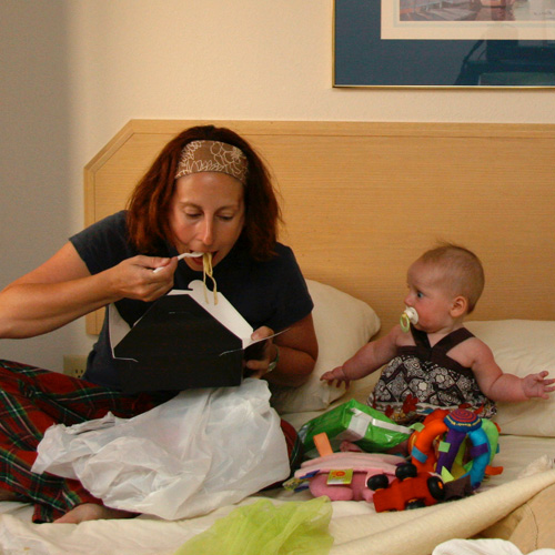 We made it to Chicago. It’s kind of rainy, but I think the fact that I’m unencumbered is totally making up for that. We made it to Oak Park for a great toy store, the Paper Source, and Whole Foods (ran out of baby food). Then off to do half of Michigan Avenue. I actually tried on jeans without someone tugging on me.