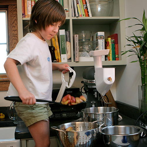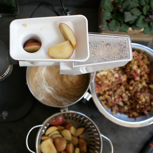 I figure the attachment will pay for itself in no time. Organic apple sauce runs me like $4 a jar, and I just made eight. Plus the two jars of sauce.