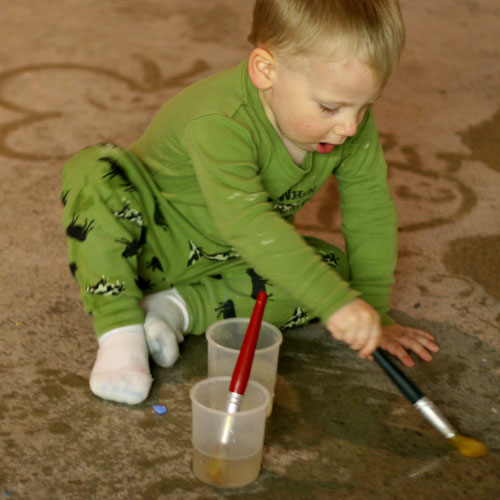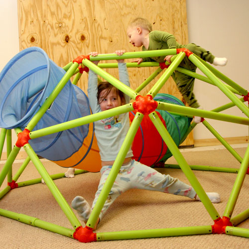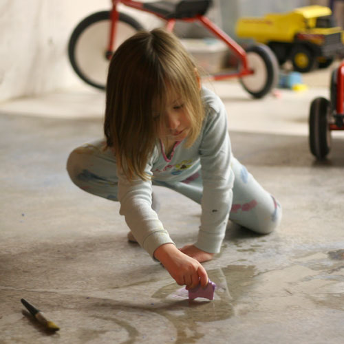 There’s a carpeted area for playing and the climbing dome, and a concrete floor perfect for chalk drawings and riding tricycles. I don’t like to toot my own horn too often, but making this basement thing happen? I AM A GENIUS.
