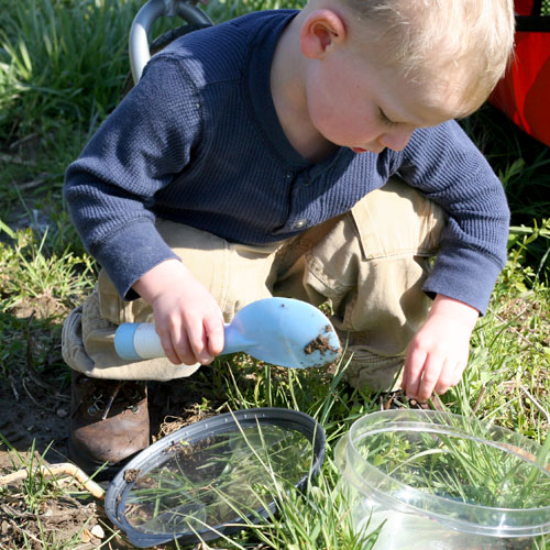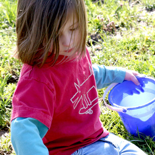 Later on I took the kids down to the garden so I could gather some starter topsoil for my kitchen composter, which I received for my birthday, but have yet to get going. The kids loved digging, and we had to pry them away from the garden. Even tonight, after we’d both played and dined outside, Neko was standing on the patio in her pajamas, refusing to come in with protests of “But it’s just so NICE out here!”