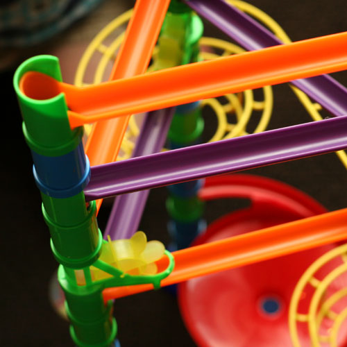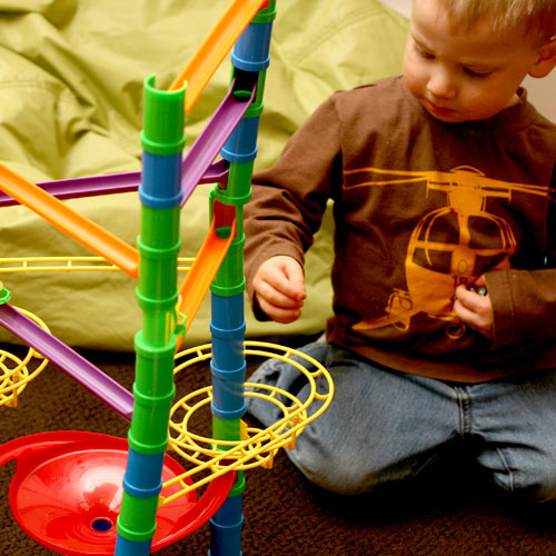 Granted, this is not the beautiful, expensive wooden Quadrilla marble run I covet. But for $15 at Target, Shep was entranced for a full hour, and I think he’ll continue to be amazed. Yes, it does topple over if a light breeze comes along and only comes in day-glo colors, but my standards are plummeting daily.