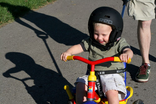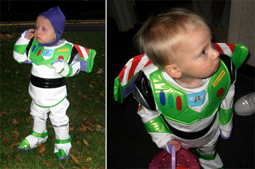 Shep was Buzz Lightyear (at Neko’s insistence, back when she was going to be Woody). He was less than thrilled about his costume, but lordy, he was cute. The pictures really don’t do it justice. I thought it was just parental bias, but I’ve seriously never seen so many 18-year-olds whip out their camera phones to document a two and a half foot tall space ranger.