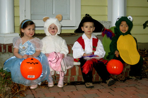 Essentially, sweet, young college freshman sit in the doorway of their dorm rooms and the kids yell “Trick-or-treat!” and receive candy. They then move about four feet to the next doorway and repeat the process all over again. In the span of half an hour, our buckets were full and Tom and I decided much more would completely undo three and a half years of conscientious organic food shopping. So we had to go home.
